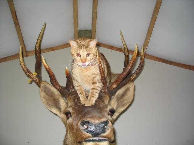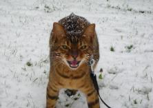 The boys are well. Chaos remains a skinny outdoor cat and Rascal a plump and stocky indoor-outdoor cat. Rascal caught his first bird yesterday ... which is good for him and bad for the environment (small urban birds are on the decline due to the cat population). They are both well adapted to the cat door which is triggered by magnets on their collars and allows them access to the out of doors at all times. Dina and Rascal and Chaos