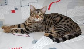 our bed (or in an open clothing drawer if we forget to close it) and has