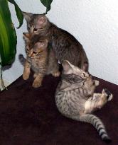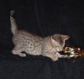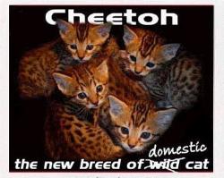 Cheetohs are a hybrid cat created from the most desirable attributes of specific Bengal and Ocicat bloodlines to produce a very large, very wild looking, intensely spotted, gentle and social companion. Every domestic cat began as a hybrid, a mix, before it was officially established as a breed of its own. This takes time, research and intense commitment to the breed to insure a strict adherence to the new breed standards. Cheetohs are registered with the United Feline Organization and we are diligently working towards having TICA recognize this ideal new breed. This has never been an easy task but every time a new breed is created they must follow stringent procedures. We are committed to the future of this beautiful animal. Females can grow up to 15 pounds and males can top 20 pounds! Cubs go to their new homes completely litter box trained and people and pet friendly!
