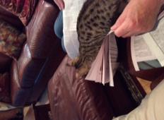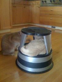 The boys are well. Chaos remains a skinny outdoor cat and Rascal a plump and stocky indoor-outdoor cat. Rascal caught his first bird yesterday ... which is good for him and bad for the environment (small urban birds are on the decline due to the cat population). They are both well adapted to the cat door which is triggered by magnets on their collars and allows them access to the out of doors at all times. Dina and Rascal and Chaos