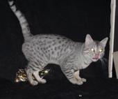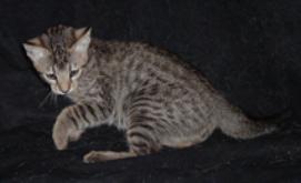 Cheetohs are a hybrid cat created from the most desirable attributes of specific Bengal and Ocicat bloodlines to produce a very large, very wild looking, intensely spotted, gentle and social companion. Every domestic cat began as a hybrid, a mix, before it was officially established as a breed of its own. This takes time, research and intense commitment to the breed to insure a strict adherence to the new breed standards. Cheetohs are registered with the United Feline Organization and we are diligently working towards having TICA recognize this ideal new breed. This has never been an easy task but every time a new breed is created they must follow stringent procedures. We are committed to the future of this beautiful animal. Females can grow up to 15 pounds and males can top 20 pounds! Cubs go to their new homes completely litter box trained and people and pet friendly!