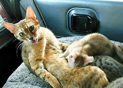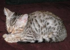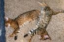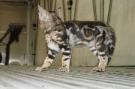 Savannahs The Savannah cat is a beautiful feline produced by breeding an African Serval to a domestic cat. This mating creates a cat with many of the striking markings of a Serval, but with a domestic temperament. The Savannah, unlike the Serval, requires no special permits, diet or care to own. The Savannah is easily trained to use the litter box and bonds well with its new family. Savannahs are reported to have a lot of dog like qualities. They can play fetch, tug-o-war, and learn tricks. Many Savannahs will actually run to the door and wait for you when they hear your car pull in the driveway. They are very smart and learn things quickly, such as what the doorknob is for. They can’t always figure out how to make it work, but they enjoy trying. Because the Savannah breed is still relatively new kittens are referred to by their generation away from the Serval. F1’s are typically 50% wild, F2’s have 25% wild blood, F3’s have 12.5% wild blood, etc. Males are sterile until the fifth generation and therefore are sold as pets only. Females are fertile and can be placed as breeders or pets. Many people are drawn to the Savannah breed because of their size. Size varies, depending on generation and sex. In general, the further away from the wild cat, the smaller they will be. However, there isn’t a large size difference between each generation. F1 males tend to fall between 20 and 27 pounds, F2 males between 17 and 25 pounds and F3 males between 15 and 23 pounds. The name Savannah refers to the African Savannah, the habitat of one of the breed's ancestors the African serval cat. The Savannah still has many of the Serval's beautiful qualities but with a more amiable temperament and better house hold habits. The Savannah is a tall lean cat with long legs and a long neck. The head is smaller in proportion to the body and longer than wide with large ears. Similar to the serval, the coat shows a spotted pattern with some bars on a golden to tawny ground color with a light colored underside. Savannah cats appear to be smaller replicas of the serval. This exotic impression is accentuated by light ocelli markings on the back of the ears as well as prominent tear duct lines in the face. Savannah males usually grow much larger than their female litter mates. Due to the graceful and long- legged appearance combined with the movement of a big cat, these striking cats are unlike any other breed. Savannah cats are friendly and sociable cats, that can get along very well with other household pets. They show their affection by eagerly giving a welcoming "head-butt" where they literally bump heads with you to say hello!. Most Savannah Cats are very outgoing and like to be petted. Because of their long legs the Savannah is an elegant jumper and like the serval often performs high leaps straight in the air. The Savannah loves water and enjoys a bath. If given the choice, a Savannah might enjoy a tub filled with water over the more usual cat games. Just like other cats Savannah cats can get along with young children and other household pets. Despite their exotic appearance, Savannah cats do not differ much from other other domestic cats in regards to care and behavior. Generally, Savannah cats can be kept like any other domestic cat but would also enjoy getting a little fresh air from a safe enclosure or a walk on a lead once in a while |